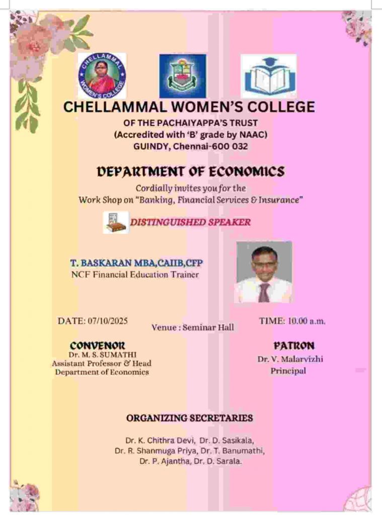Dr.V. Mahalakshmi Natchathiram co- ordinated Dr.M.S.Sumathi Head of the Department of Economics the organizing committee members were the department staffs. Chief Guest Dr. S.Jaya Raman Associate Professor and Head Department of Economics, Presidency College (Autonomous), Chennai-5 Inaugurated the Economic Association on 16th February 2023.