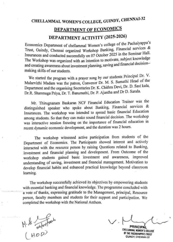 Department of Economics had conducted Seminar titled “DIGITAL INDIA – INITIATIVES AND CHALLENGES’’ 9th October 2019. Dr. S. Jayaraman, M. A., M. Phil., Ph.D., B.L Associate Professor, Department of Economics, Presidency College, Chennai was our chief Guest on that day.