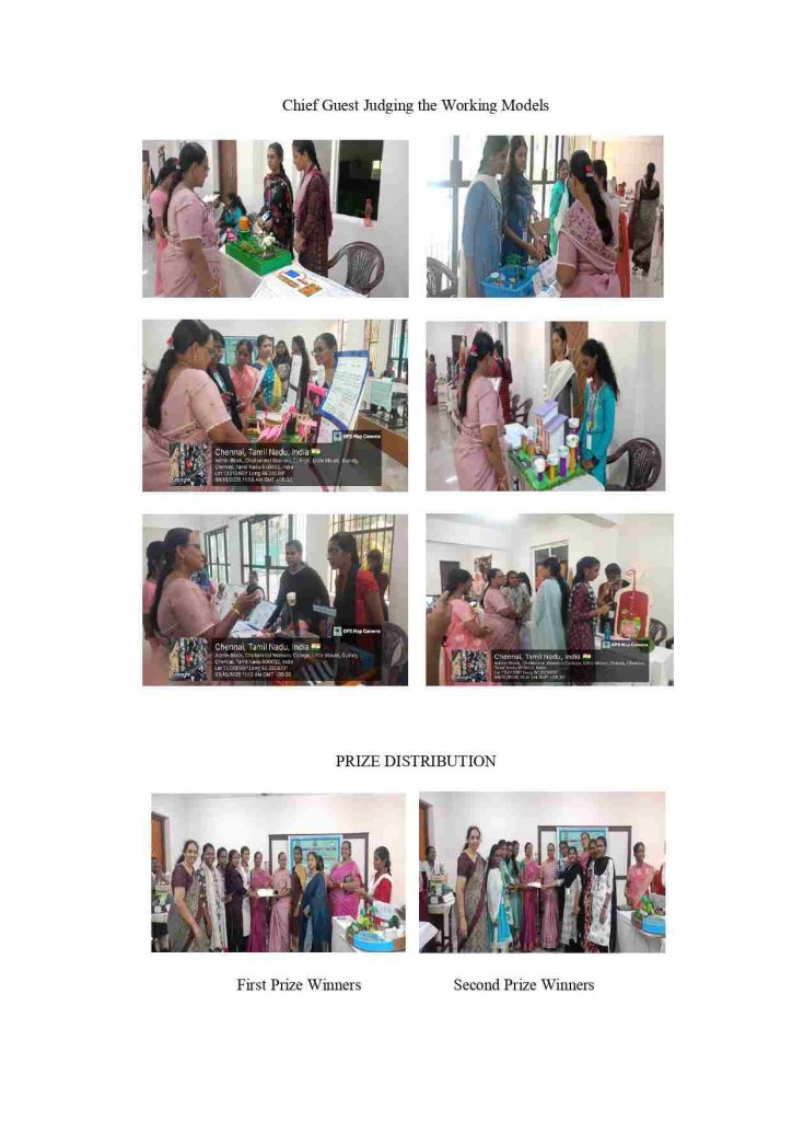 In the intercollegiate competition conducted by the Ethiraj College, final year students of Advanced Zoology and Biotechnology – C.Mary Jasmine and S.S.Preethisree won First prize for Spotter Identification. S.Vaishali, K.AfrinaBanu and N.Abinayasree got Third prize for Model making