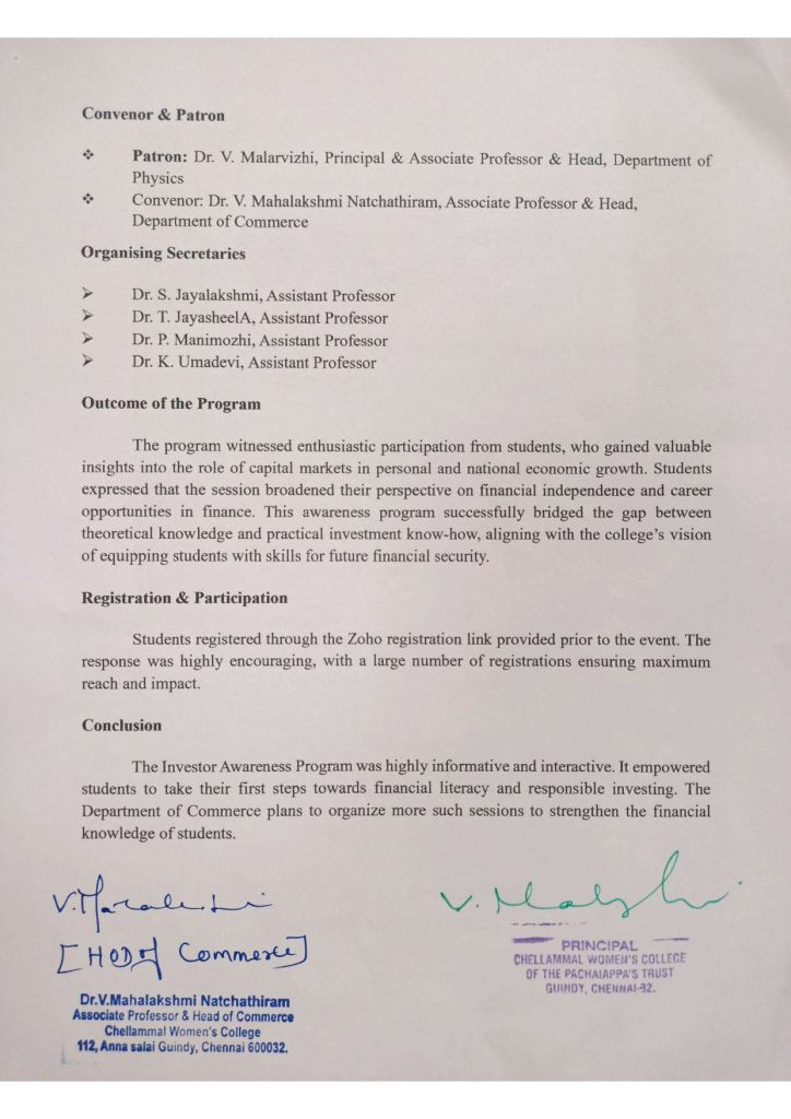 • Organisers Dr. V. Mahalakshmi Natchathiram, Dr.S. Jayalakshmi, & Dr.T.Jayasheela, Assistant Professors & organised by department of commerce.