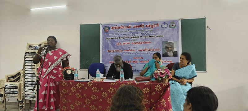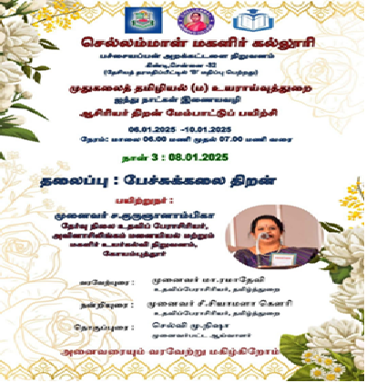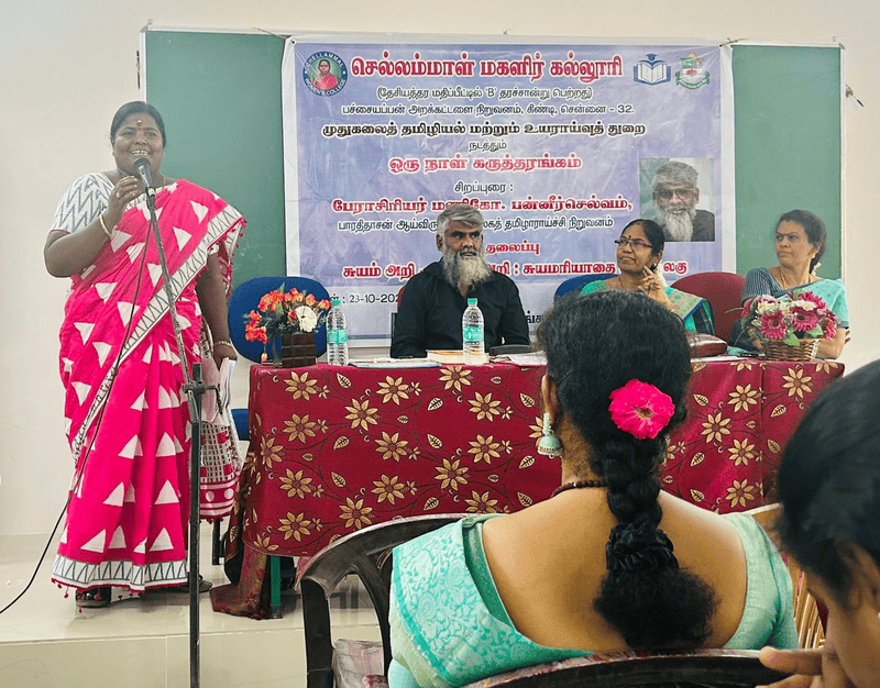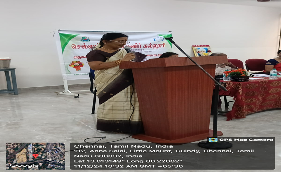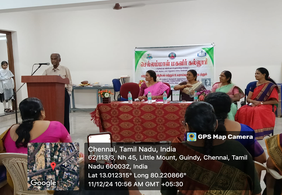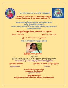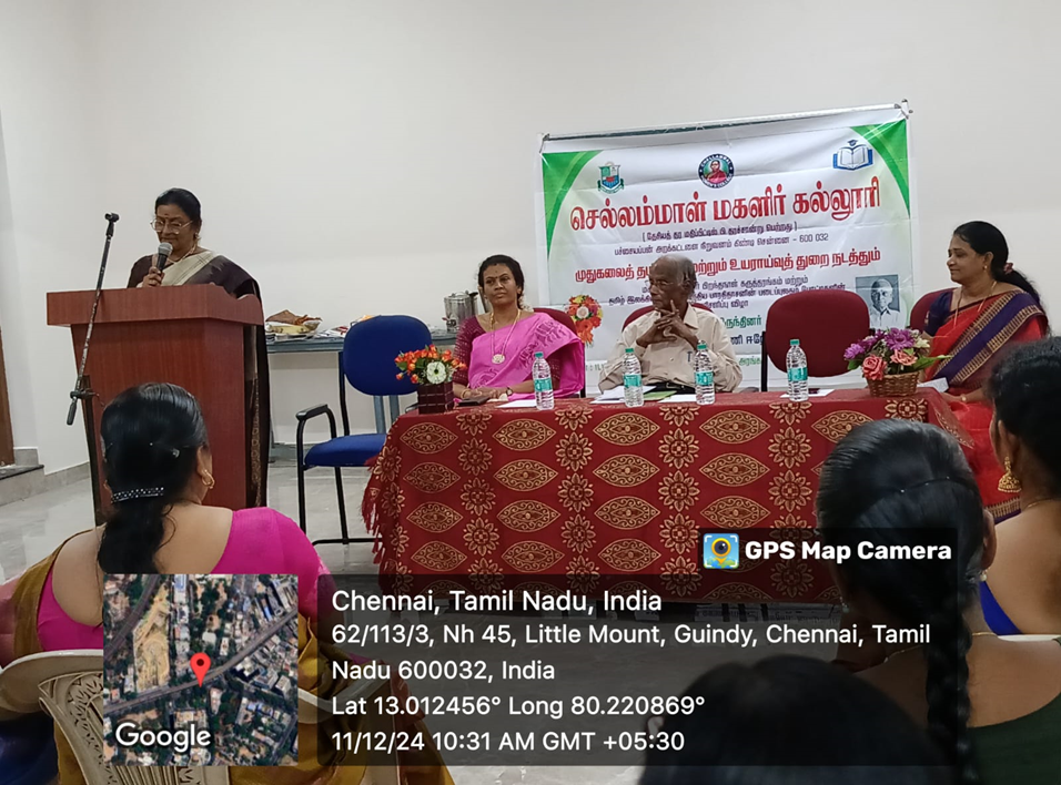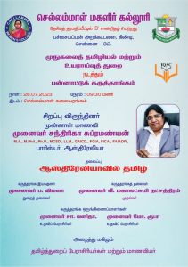 Chellammal Women’s College Alumni Dr.Chandrika subramaniyan( Barrister Australia) Endowment Seminar was held on 26 February 2023.Dr.Balaraman,(Assistant Professorof Tamil, Govt Arts College ,Chennai )was given speech about “Tamizhlar Vaalviyal’.