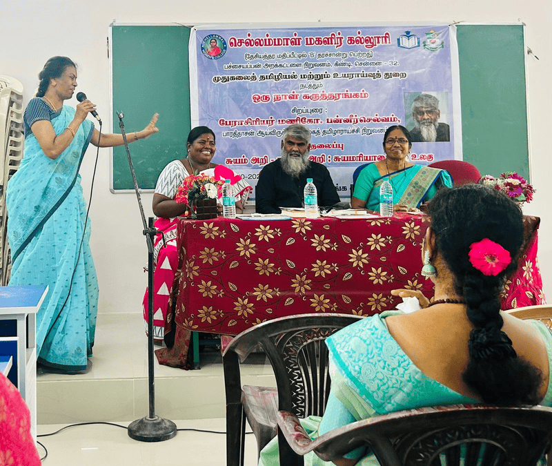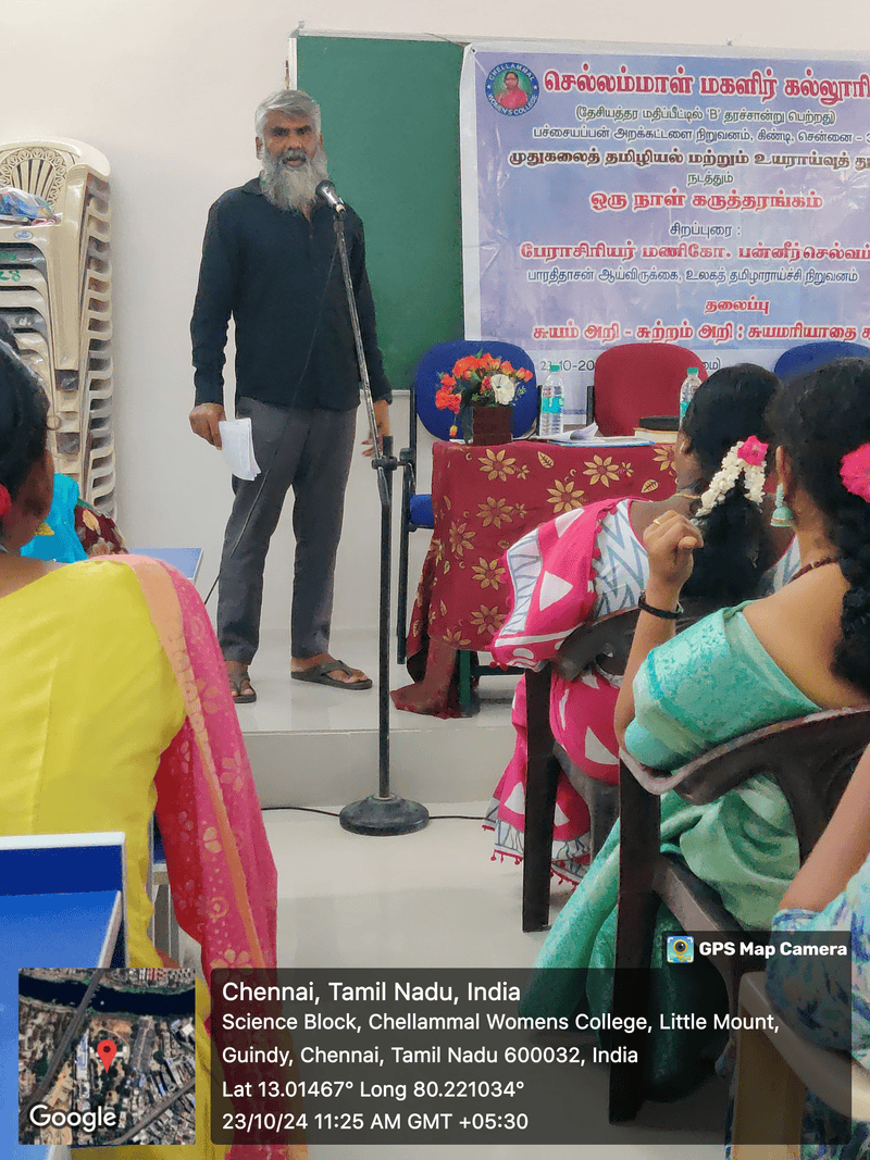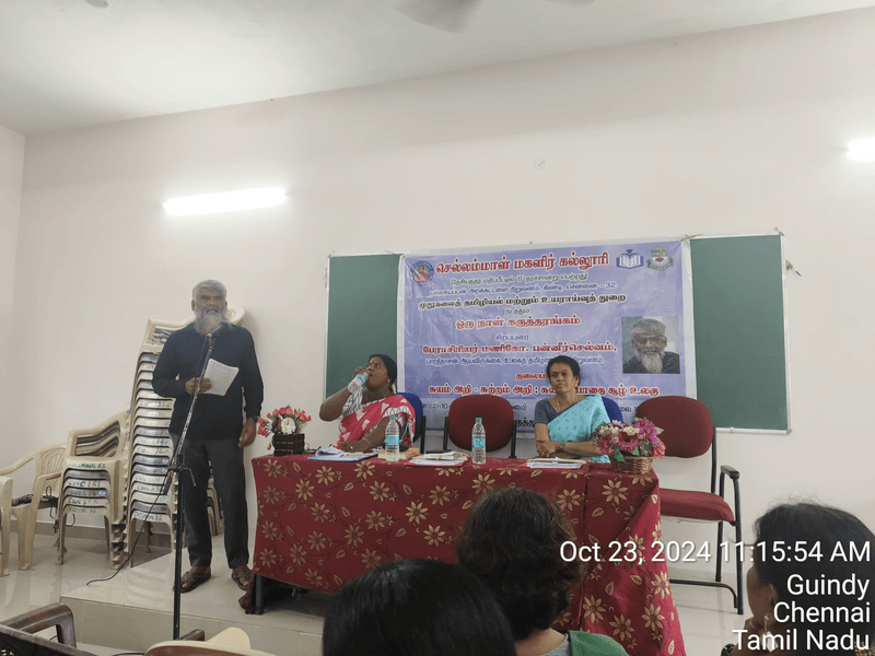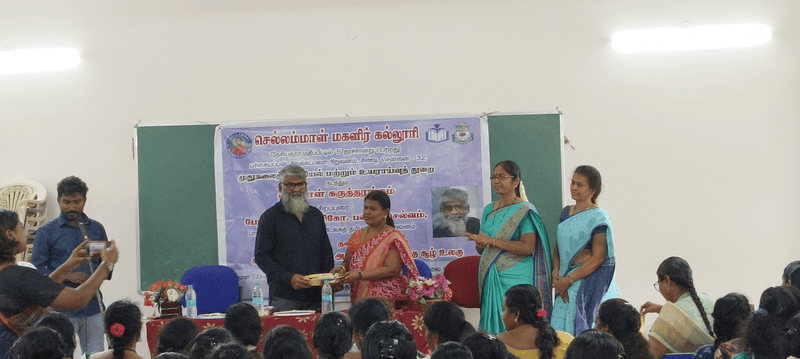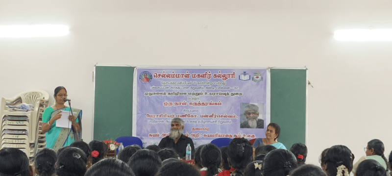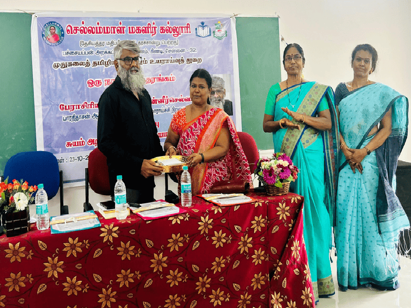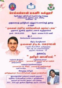 Chellammal Women’s College Alumni Dr. Chandrika subramaniyan ( Barrister Australia) Endowment Seminar was held on 26 February 2023.Dr.Balaraman,(Assistant Professorof Tamil, Govt Arts College ,Chennai )was given speech about “Tamizhar Vaalviyal”.