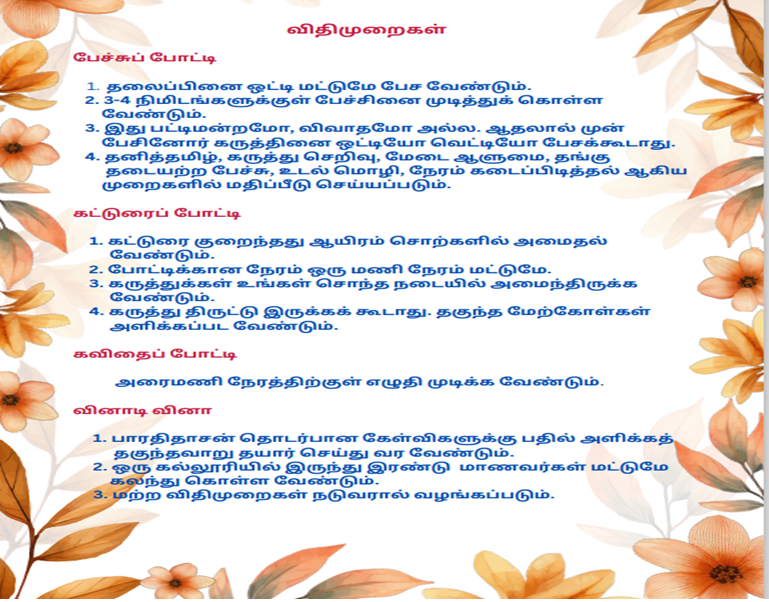 தமிழ் இலக்கிய மன்றம் – கல்லூரிகளுக்கு இடையேயான போட்டிகள்