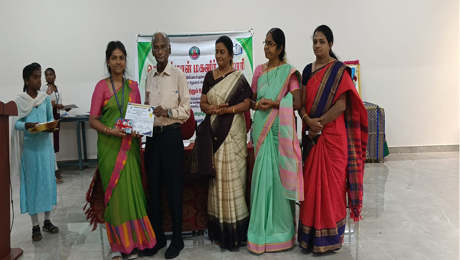 வெற்றி பெற்ற மாணவிகளுக்கு பரிசுகள் வழங்கப்பட்டு முத்தமிழ் விழா கொண்டாடப்பட்டது.