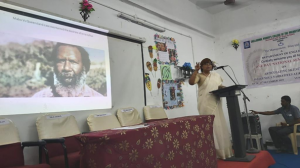 Prof. T. Marx from the Department of English at Pondicherry University presented a special lecture on “Indigenous Experience and Elitist Imagination.” His insightful presentation examined the complex relationship between indigenous communities, institutional knowledge systems, and the literature about them. He highlighted the resistance of indigenous people to stereotypical representations in mainstream Indian literature.