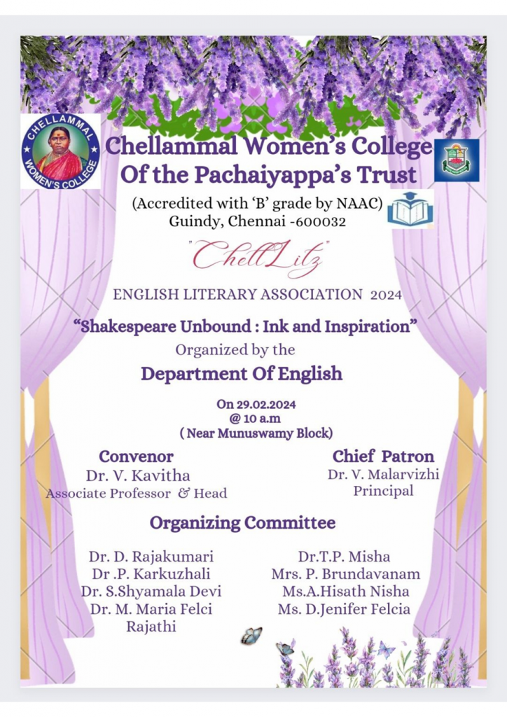 The Department of English hosted its much-anticipated ChellLits Literary Association event in the open-air stage on February 29, 2024, themed “Shakespeare Unbound: Ink and Inspiration.” Aimed at celebrating the timeless works of William Shakespeare while fostering creativity and artistic expression among students. A total of 160 enthusiastic participants took part in this celebration of Shakespeare’s literary legacy.