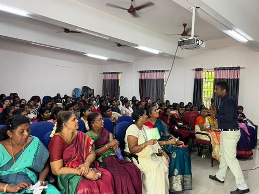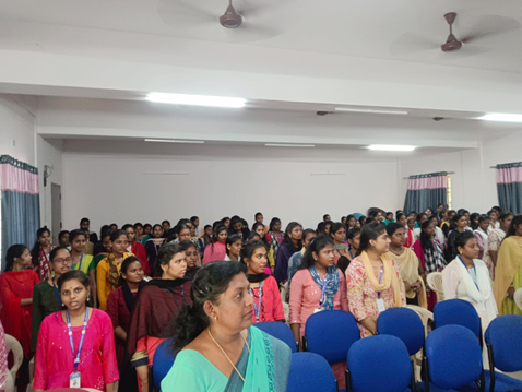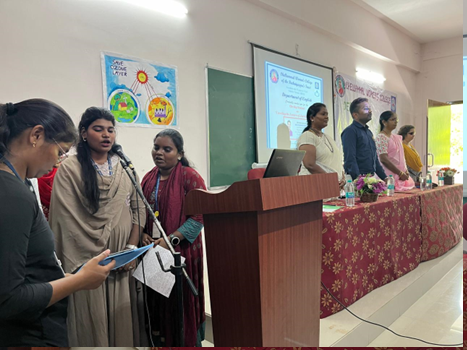 The program began with an invocation, followed by a welcome address delivered by Mrs. Jagadeeshwari, Head of the Department of English. The guest was then introduced by Mrs. Girija Suresh, Head of the Department of Economics.