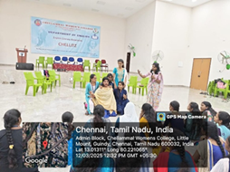 The Department of English, as part of its Chellitz English Literary Association, organized a drama workshop titled “Stage It!” on 12th March 2025 at Chellammal Arangam. The workshop was conducted by Dr. S. Meenakshi, Assistant Professor of English, Shasun Jain College for Women, Chennai.