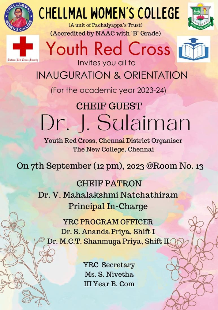 2. The YRC unit of our college inaugurated the YRC program for the academic year 2023-24. The inauguration was followed by an orientation program for shift I and II volunteers on 7th September 2023 by Dr.J.Sulaiman, Youth Red Cross Chennai District organiser. Around 150 students participated.