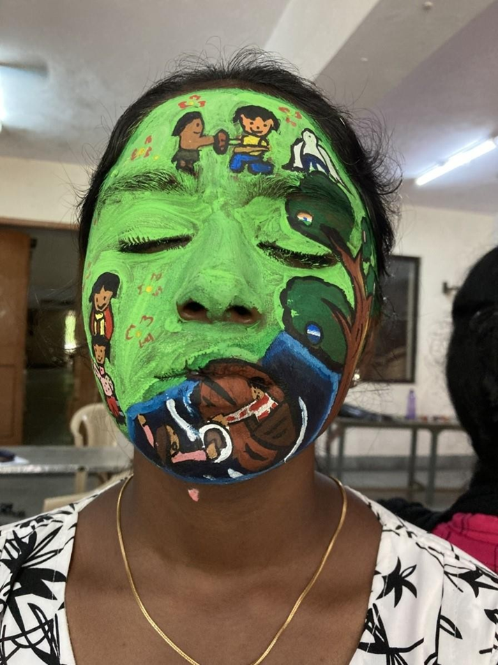Face painting done by students in inter-departmental Face Painting competitionas on “Role of Youth towards Humanity-Globally” on 24thAugust 2022 conducted by YRC Unit of Chellammal Women’s college.
