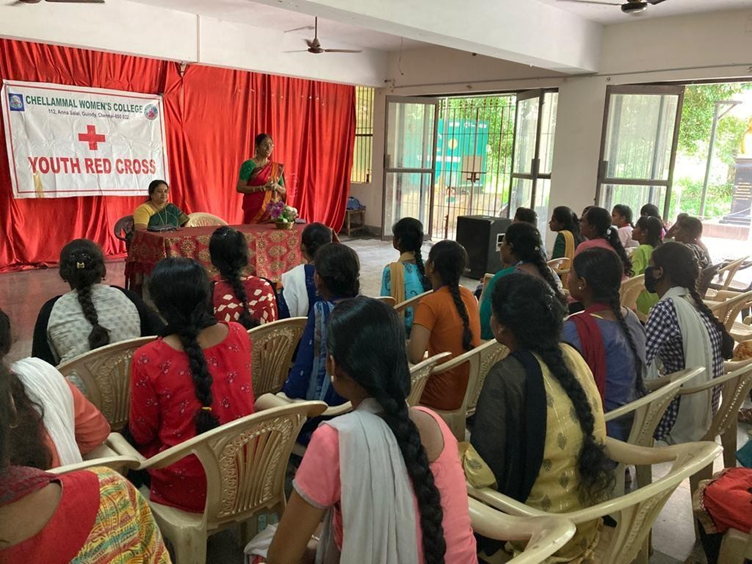 Our Principal I/C Dr.V.Mahalakshmi Natchathiram addressing the students during prize distribution ceremony of YRC Unit of Chellammal Women’s college. YRC Unit of Chellammal Women’s college organised inter-departmental Face Painting, Essay writing, Elacution competitions on the topic “Role of Youth towards Humanity-Globally” on 24thAugust 2022.