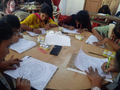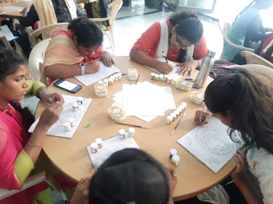A two day offline inter collegiate workshop on Kerala Mural painting and Lipan art workshop was conducted on 3.0.23 & 4.3.23. A trainer from Fevicryl certified professional trainer (pidite) L.Karpagavalli trained the students. Around 50 students from S & A arts and Science College and around 50 students from Chellammal Collge participated in the workshop. Certificates were given by the Fevicryl Company to the participants.