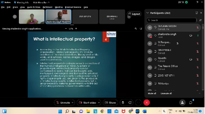 A online webinar was conducted to create awareness on intellectual properties rights on 09.08.2022, Dr.Shailendra Singh, Examiner of Patents & Design(NIPAM Officer), Mininstry of Commerce and Industry, DPIIT, Patent Office, Delhi. Around 679 were participated the program and certificates were issued by the NIPAM to all the participants and to our institution for conducting the program.