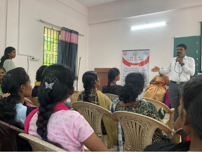Mrs.Umadevi, Counsellor, Saidapet Maternity Hospital addressing students