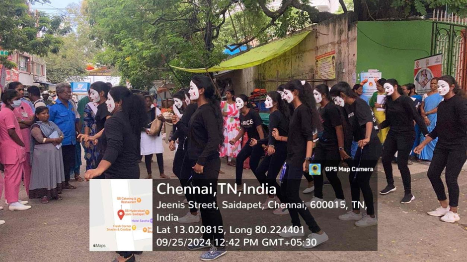 3. Red ribbion club of Chellammal Women’s college received letter from DAPCU to organise “FLASH MOB” on HIV/AIDS awareness in front of Government Maternity Hospital, Saidapet on 25/9/2024 and the same was organised with the help of Parai team and dance team of our college. The students performed flash mob and pamphlets were distributed to public regarding HIV/AIDS.