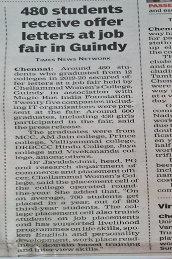 8. Our College has conducted Job Fair in Association with Magic Bus India Foundation on 22/2/2021. Nearly 25 Companies including IT organizations were present at the fair. Around 600 students were participated in the fair, Of Which 480 students received offer letters for the placement.